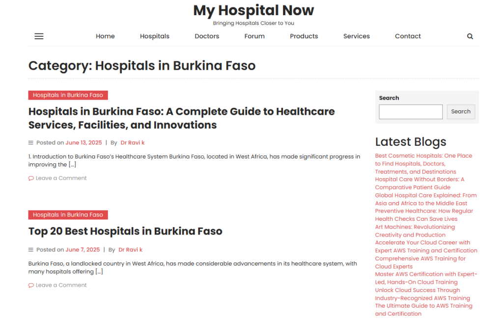 For organized, patient-friendly insights into hospital services and treatment options, visit the Hospitals in Burkina Faso category on MyHospitalNow.