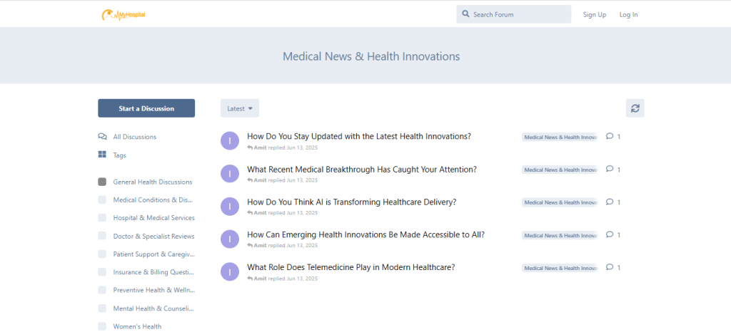 The Medical News & Health Innovations category of the MyHospitalNow Forum brings health developments alive in a patient‑centered way — with clarity, community perspective, and shared insight.