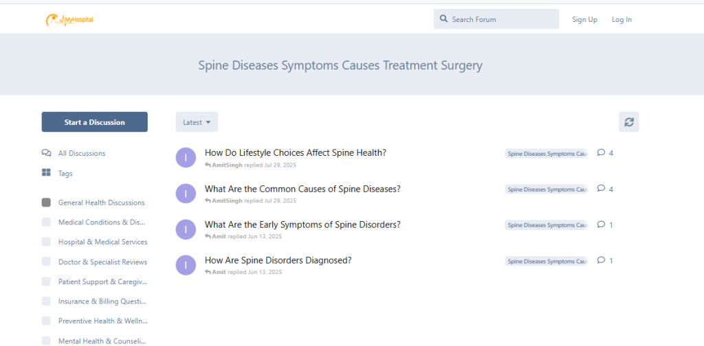 The Spine Diseases: Symptoms, Causes, Treatment & Surgery category of the MyHospitalNow Forum connects you with real experiences, practical tips, and emotional support — all in simple language that makes sense.