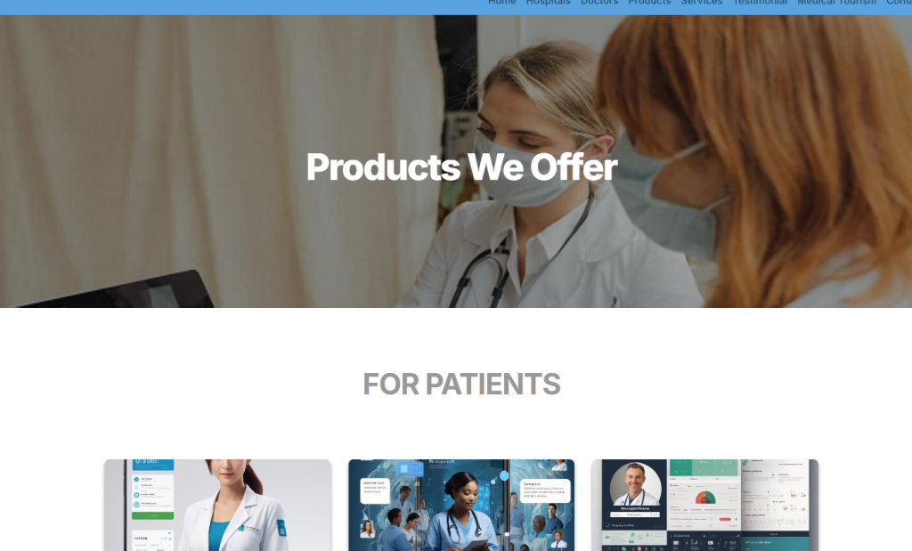 MyHospitalNow Products are a collection of digital healthcare tools and services created to support patients, hospitals, and doctors. These products do not sell physical items. Instead, they provide healthcare support solutions that help patients understand, plan, and manage their medical needs.